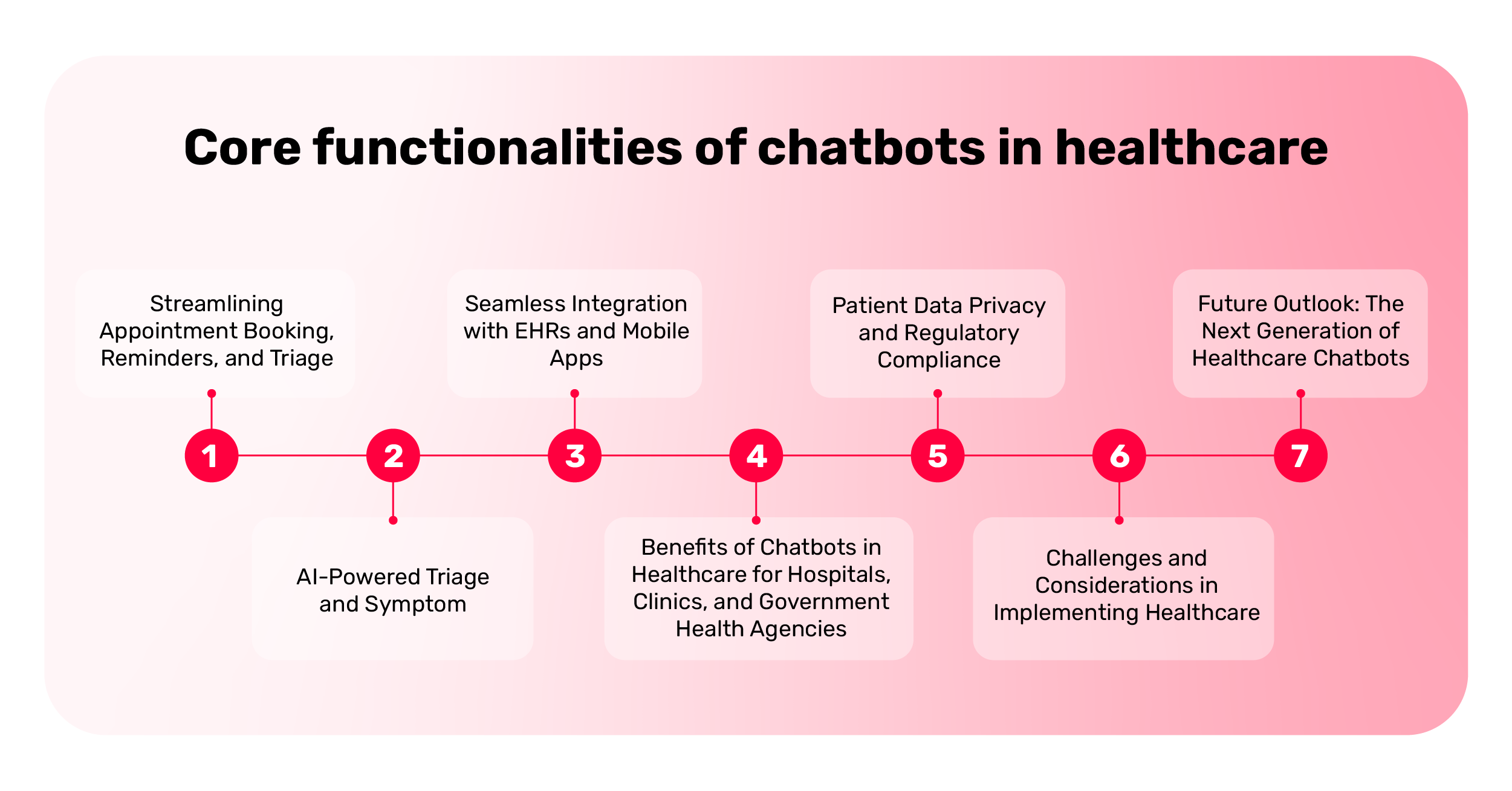 These statistics aren't just impressive; they're a glimpse into the future. As we enter the second half of this decade, it's clear that chatbots in healthcare are no longer experimental; they're essential. From streamlining appointment booking to assisting in clinical triage, these digital assistants are transforming how healthcare systems operate and how patients engage with care.
